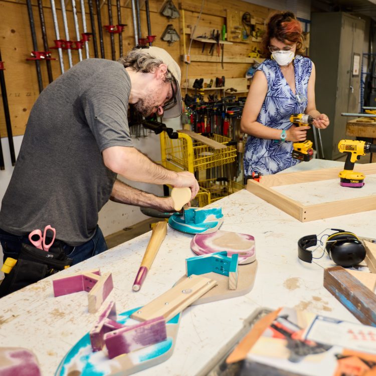 Accompagné·es par l’équipe de médiation des Précieuses fissures, des artisans membres de LESPACEMAKER, et un·e formateur·trice en écoconception d’Écoscéno, les participant·es s’initient au surcyclage en 3 jours d’atelier intensif. Des meubles et matériaux de seconde main sont mis à leur disposition pour créer de nouveaux objets avec une nouvelle fonction, tout en les formant aux bases de l’écoconception. La contrainte : ces « chimères » doivent être fonctionnelles et répondre à un besoin du quartier (une école, un organisme partenaire, un centre social, une ruelle verte….). À la fin du projet, nos chimères sont données à des organismes culturels et communautaire du quartier pour poursuivre leur troisième vie !